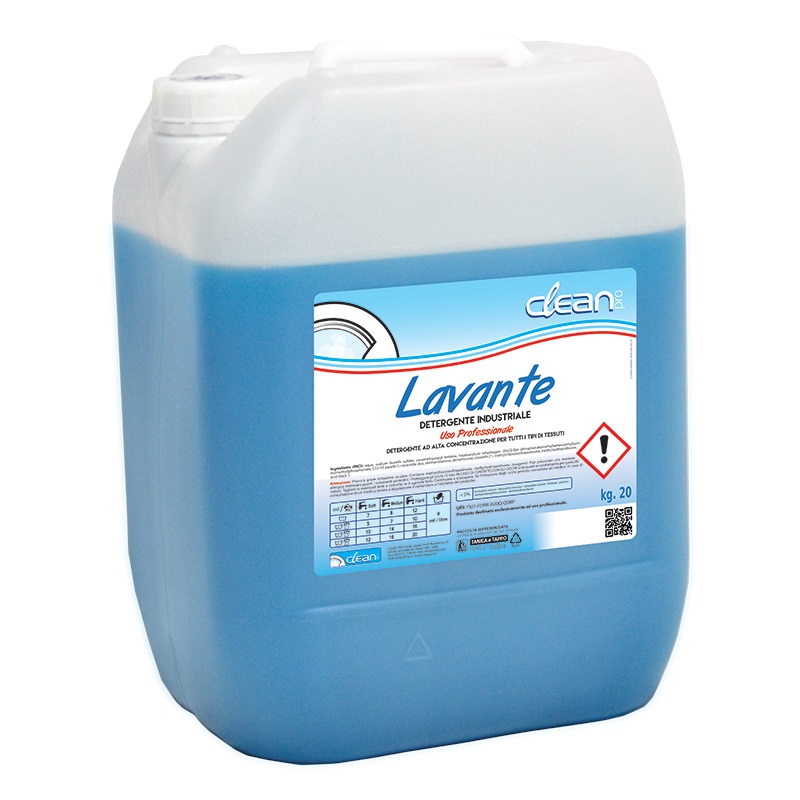 CleanPro Detergente Lavante è un detergente liquido professionale ad alta concentrazione, specifico per il lavaggio di tutti i tipi di tessuto, sia a mano che in lavatrice. La sua formula efficace e versatile è adatta a diversi livelli di sporco e a differenti durezze dell’acqua, garantendo pulizia profonda e risultati costanti in ogni condizione operativa.