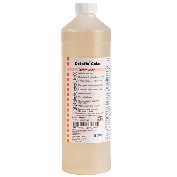 Detafix Color 1 Litro: smacchiatore delicato per olio e colore, per la pulizia professionale dei tessuti.