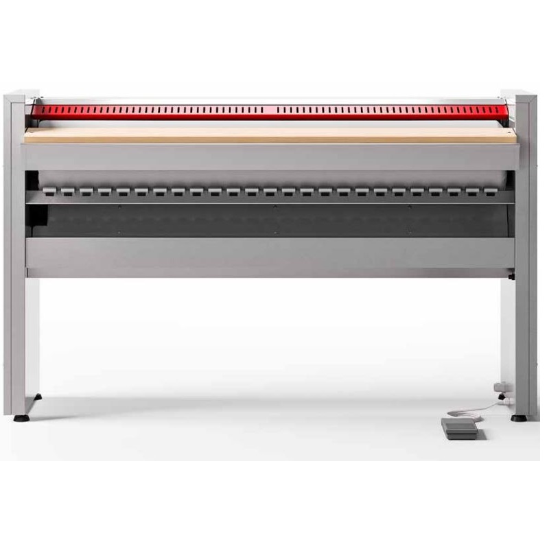 Le stiratrici GI, inoltre, sono dotate di un sistema di raffreddamento della banda salvadita, Finger-guard Cooling System (FCS), e di 2 sensori di temperatura che, in caso di surriscaldamento rilevato dalla scheda elettronica, interviene spegnendo il sistema di riscaldamento. Un doppio sistema di attivazione del riscaldamento, poi, con due contattori, fa sì che in caso di guasto la macchina sia sempre in sicurezza.