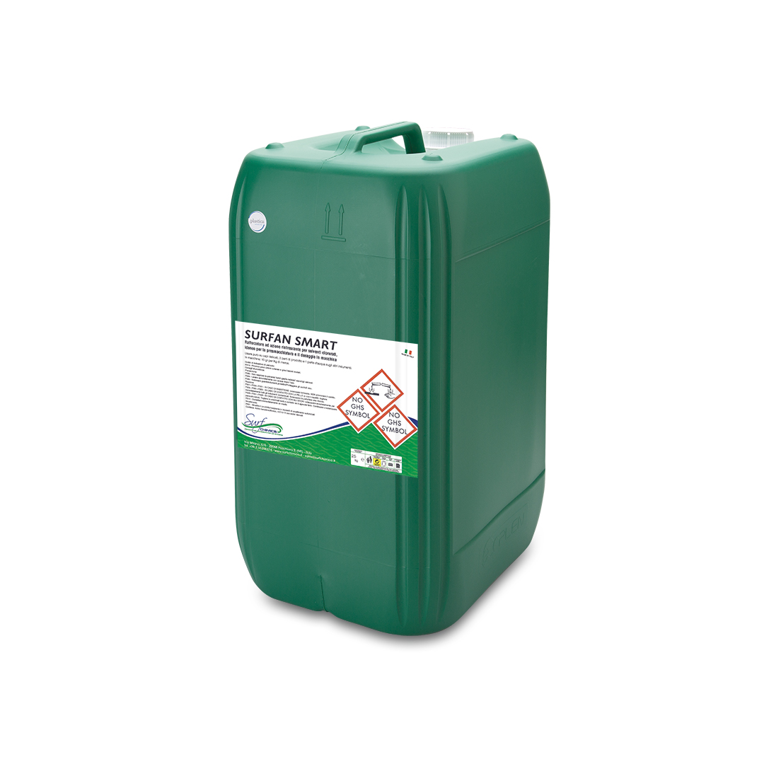 Surfan Smart 10 kg, rafforzatore rinfrescante per lavaggio a secco. Ideale per presmacchiatura o dosaggio automatico. Uso professionale. Tanica Surf Chimica.